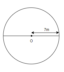 It is given that the radius of the circle is 7m. So, we know that the area of a circle is calculated by $\pi {{r}^{2}}$.