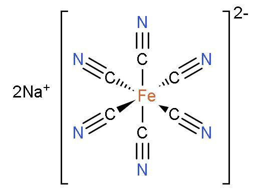 It is a complex red-coloured compound that has an octahedral structure with iron(III) at the centre and surrounded by one linear nitric oxide ligand and five cyanide ligands. The structure of sodium nitroprusside is: