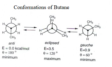 Conformational isomerism is a form of stereoisomerism in which the isomers can be interconverted just by rotations about single bonds. These conformations change only by single carbon carbon rotation. In butane, four such conformations are possible which are fully eclipsed, eclipsed, gauche and anti.