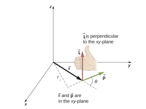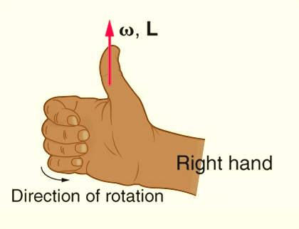 Note: The direction can be resolute using the right hand rule, according to this rule, the fingers on your hand curl towards the direction of rotation or force exerted, and your thumb points towards the direction of angular momentum.
