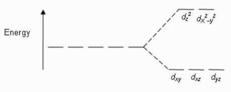 When any negatively charged species or ligand approaches a metal, the energy of the orbitals increases. This leads to the splitting of orbitals as –
