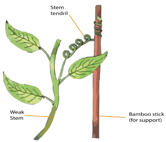 The tendrils are the wiry, skinny, thread-like structures that are curled once they come in contact with an object. They help in providing support to the plants and are generally observed in the case of the pea plants. Hooks are the leaf modification where the end of the leaflets develops a hook-like structure which gives the plants support and helps them in climbing, it is mostly observed in the case of the flowering plants. Example: Cat’s nail, Aloe, etc.