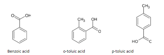 Firstly let's understand represent the structure of benzoic acid, o-toluic acid and p-toluic acid: