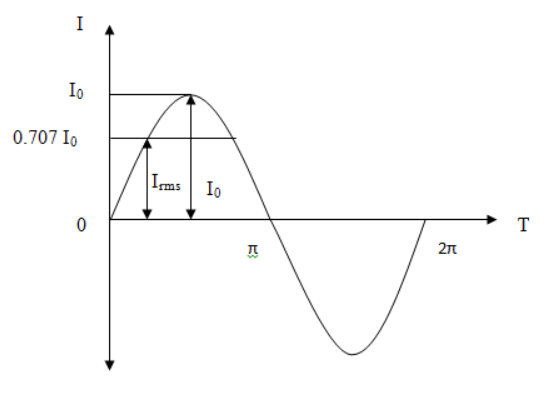 where, \[{I_0}\] is peak value of current and \[{I_{rms}}\] is root mean square value of current.