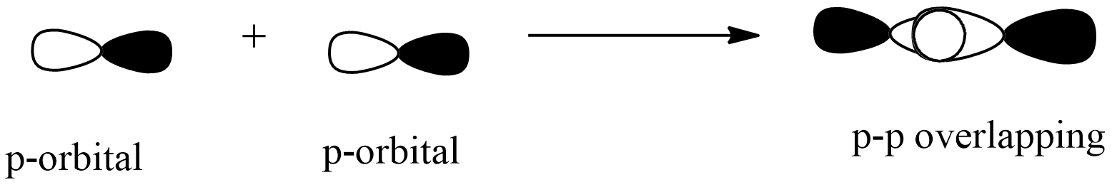 p-p overlapping: this overlapping of two half-filled p-orbitals through the internuclear axis as shown below: