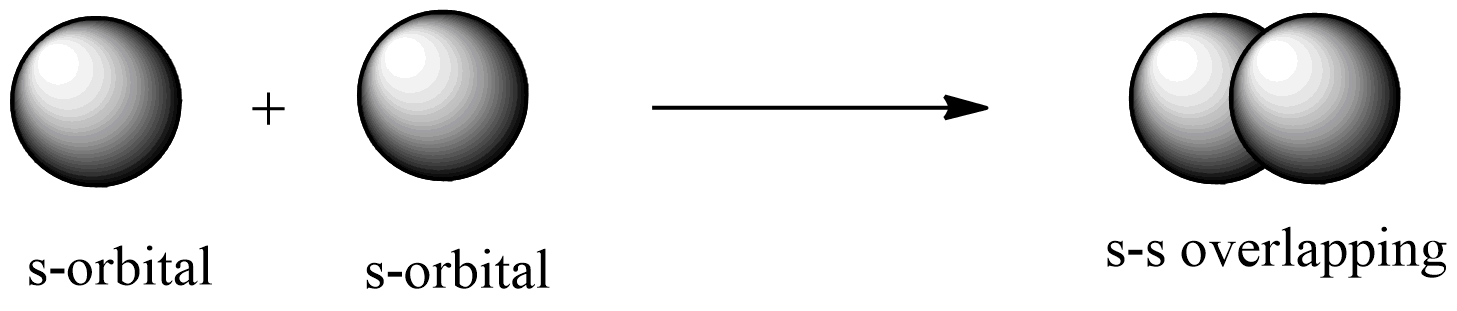 s-s overlapping: this overlapping of two half-filled s-orbitals through the internuclear axis as shown below: