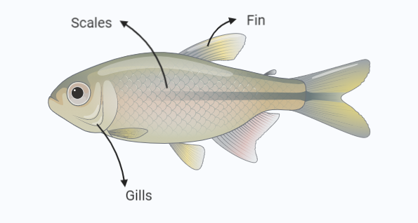The body of Pisces is streamlined to cut water. They have fins to facilitate swimming and locomotion. Pisces usually have one pair dorsal, one pair ventral, one pair pectoral, one pair pelvic, and a single caudal fin. However, fins are present in other mammals like whales and dolphins too that swim.