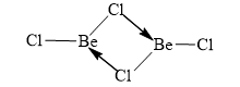 Structure of $B{{e}_{2}}C{{l}_{4}}$: Similarly beryllium also has vacant orbitals therefore chlorine donate its lone pair to that vacant orbital and dimerisation of $BeC{{l}_{2}}$takes place.