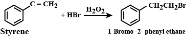 B.When styrene is treated with \[HBr\] in the presence of peroxide there is addition of bromine according to anti markovnikov rule. The final major product of this reaction is 1-Bromo-2-phenyl ethane is obtained.