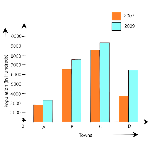 Population growth in town D = 6300 – 4600 = 1700