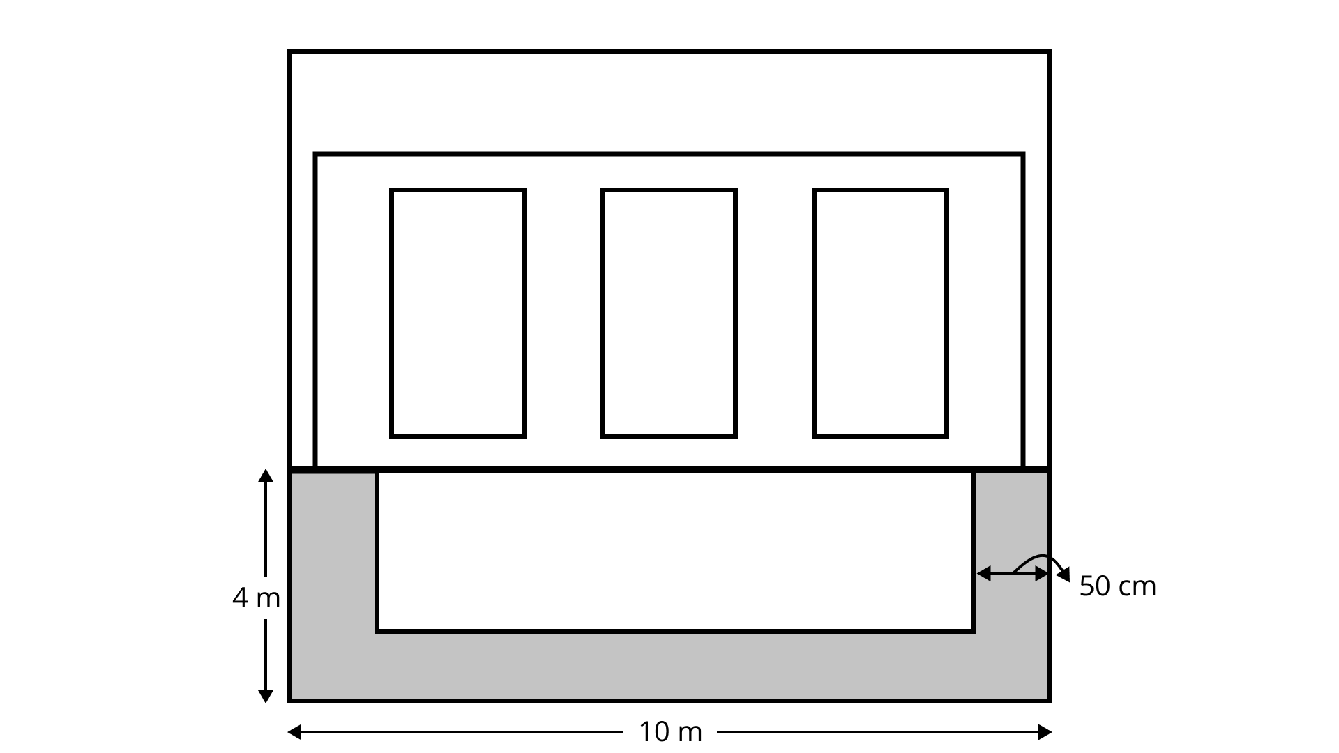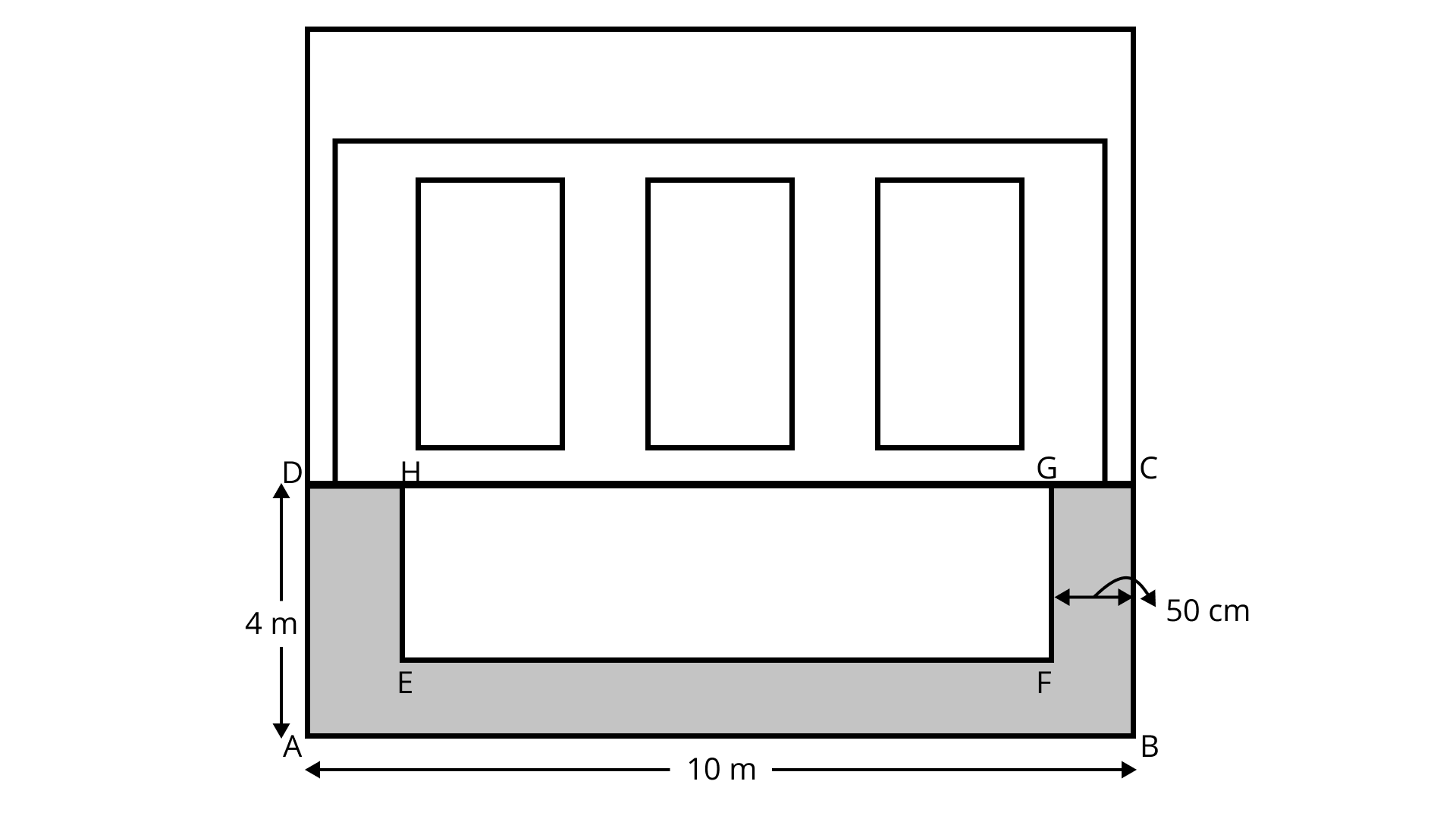 Ans: Area covered by swimming pool $ = 30\;{\text{m}} \times 20\;{\text{m}} = 600\;{{\text{m}}^2}$.