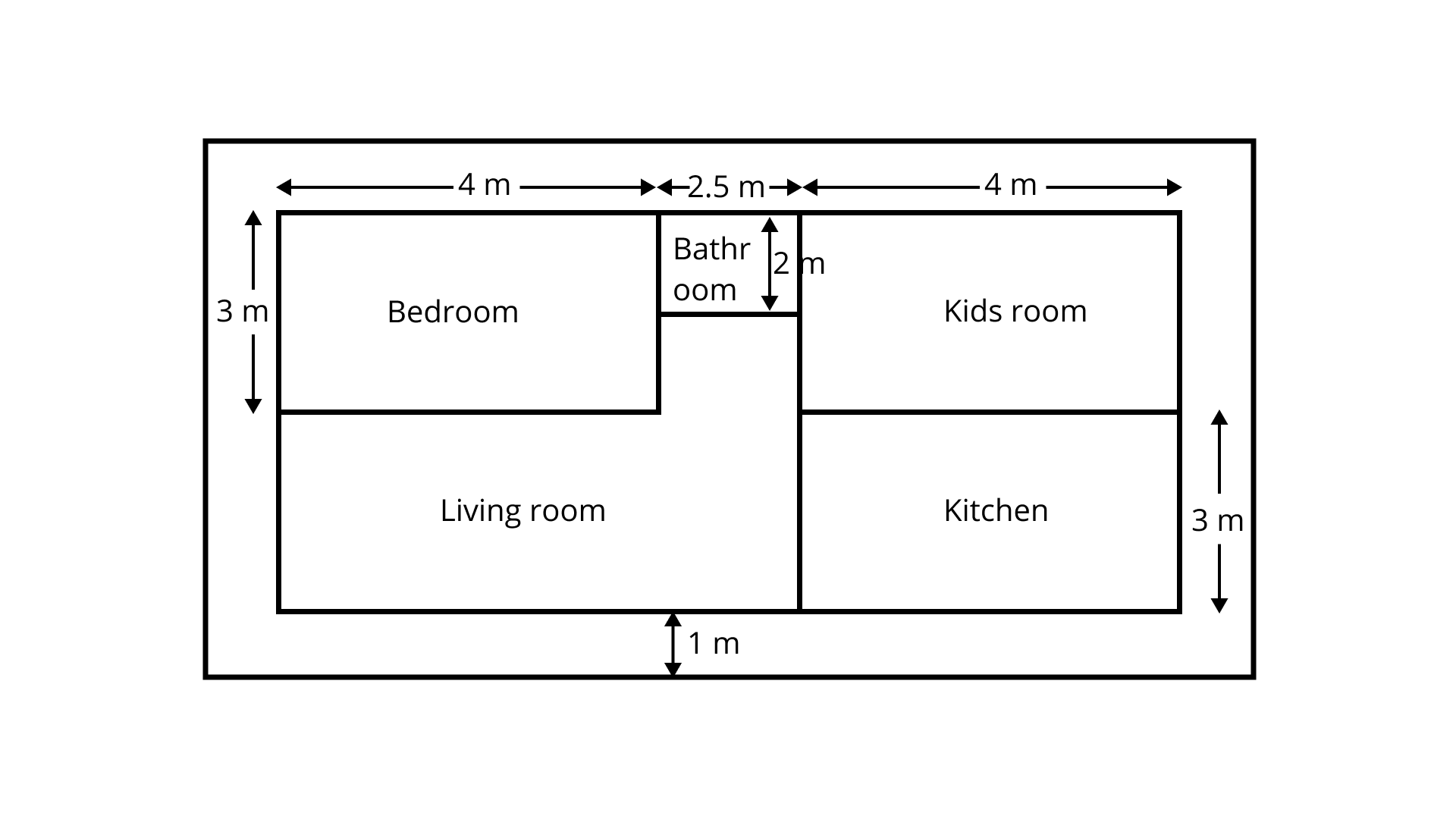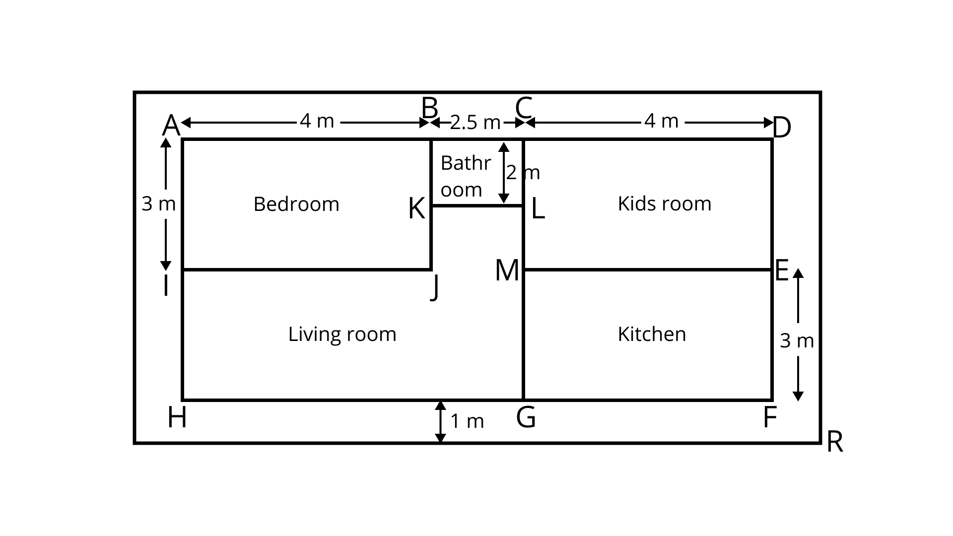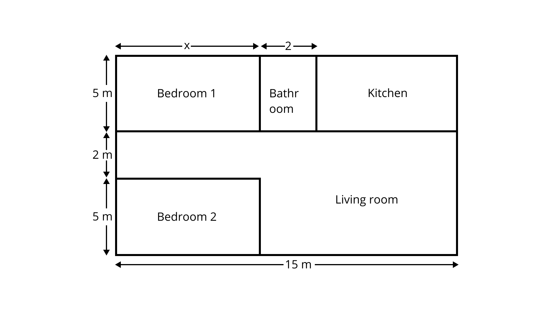 Area of bedroom $1 = $ Length ${\text{x}}$ Breadth