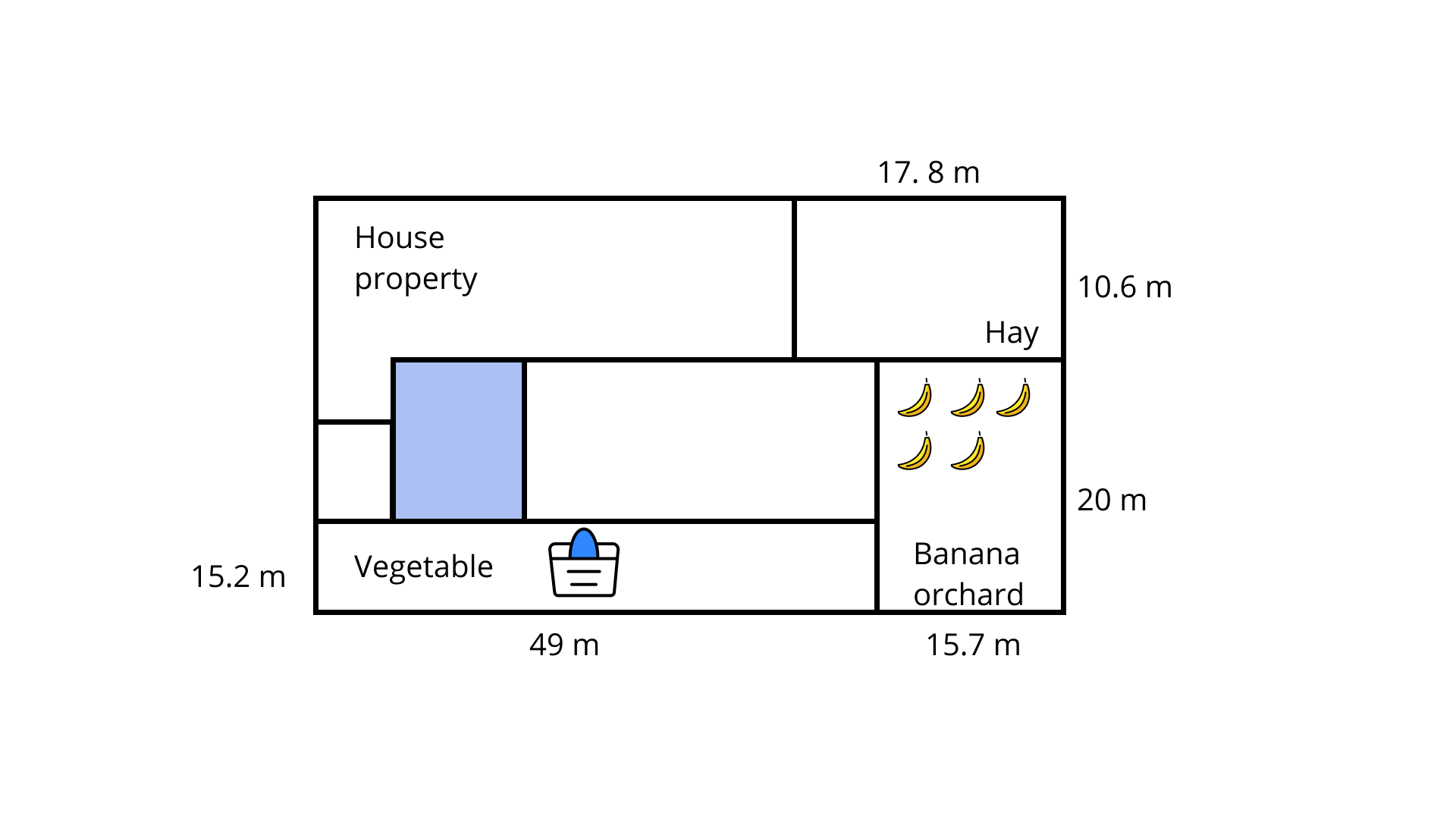 Ans: Total perimeter of all the five rooms,