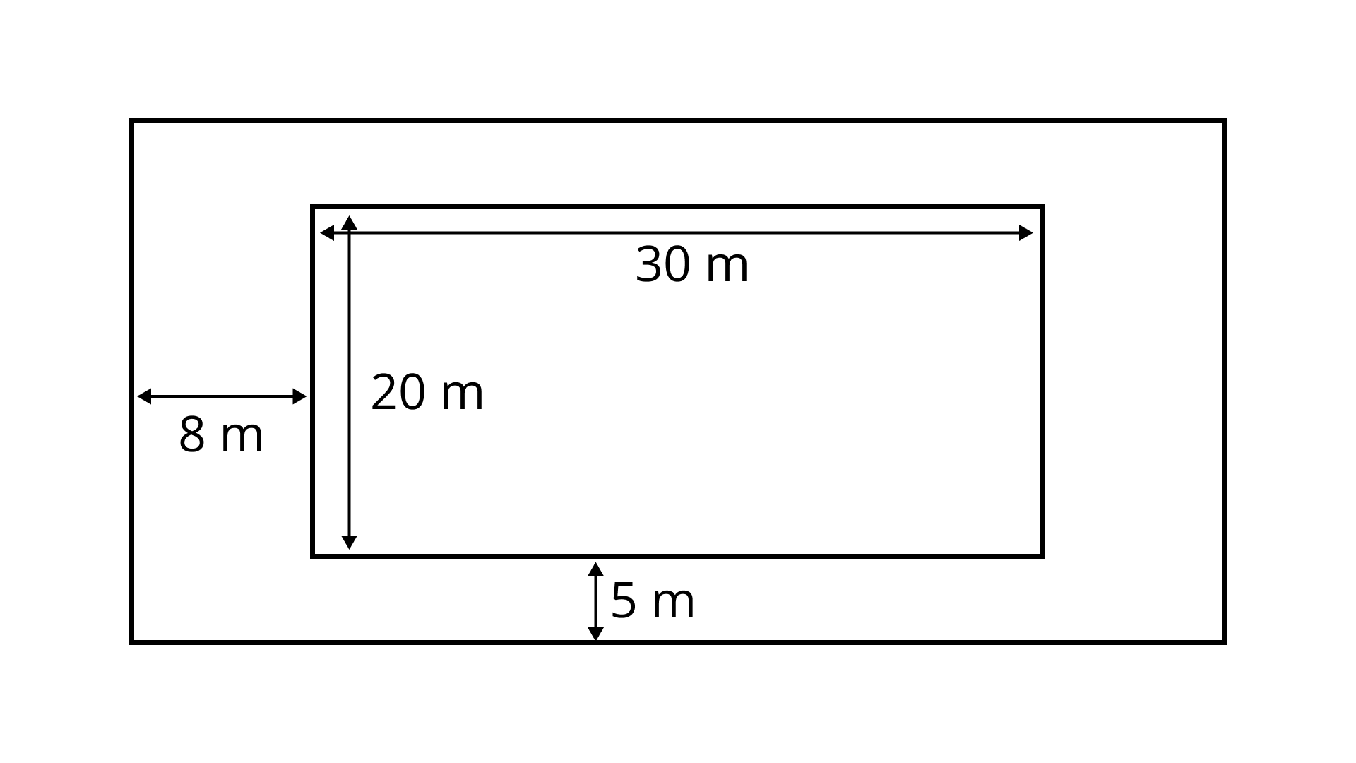 Length of outer rectangle $ = (30 + 8 + 8){\text{m}} = 46\;{\text{m}}$ and its breadth $ = (20 + 5 + 5){\text{m}} = 30\;{\text{m}}$