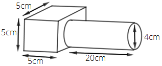Cube of side $5cm$ and cylinder of height $20cm$ and radius $2cm$.