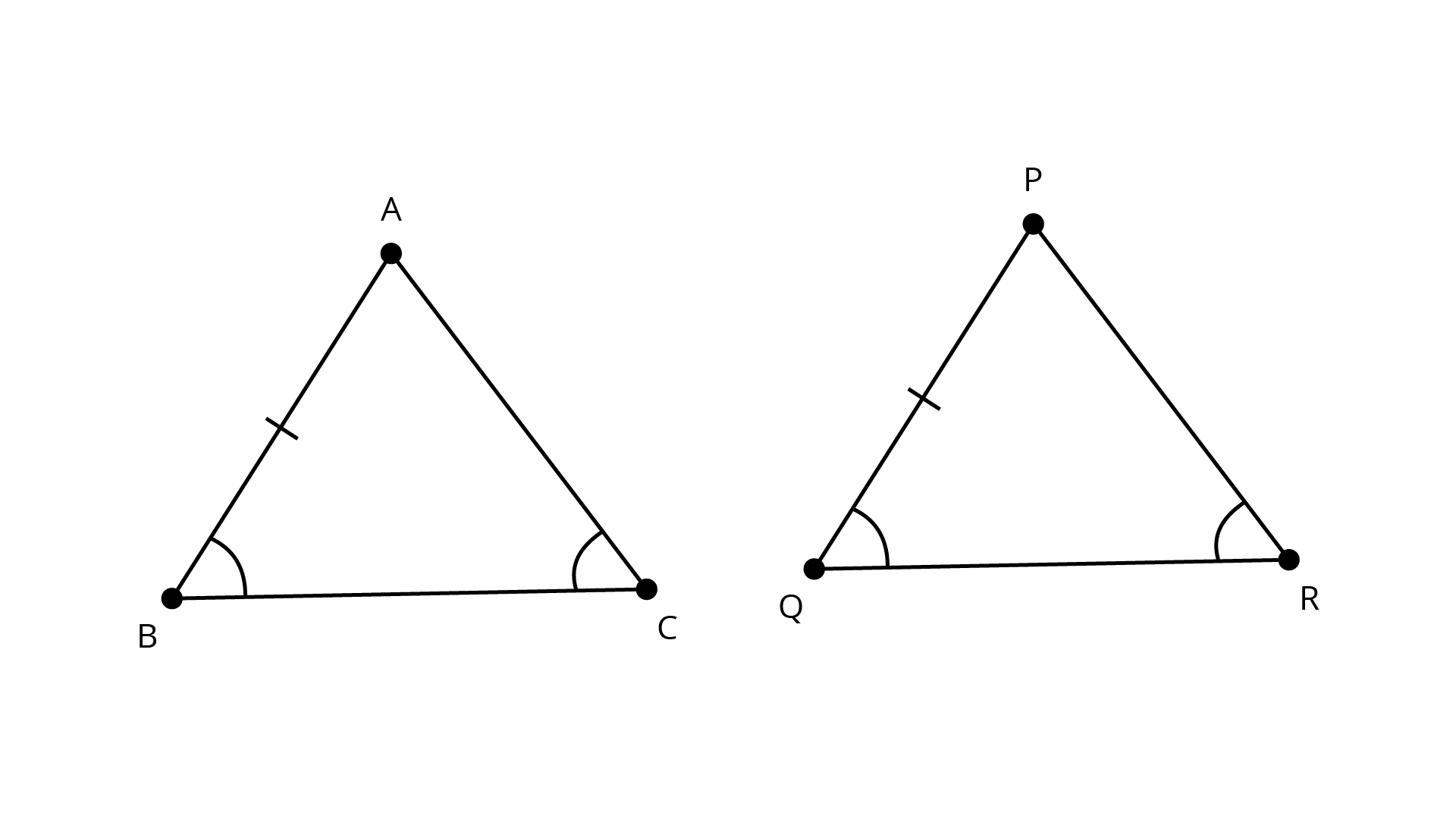 \[{\text{AB}}{\text{ = }}{\text{QR, BC}}{\text{ = }}{\text{PR and CA}}{\text{ = }}{\text{PQ}}\]
