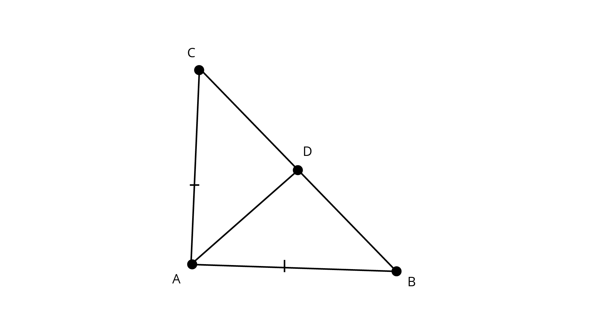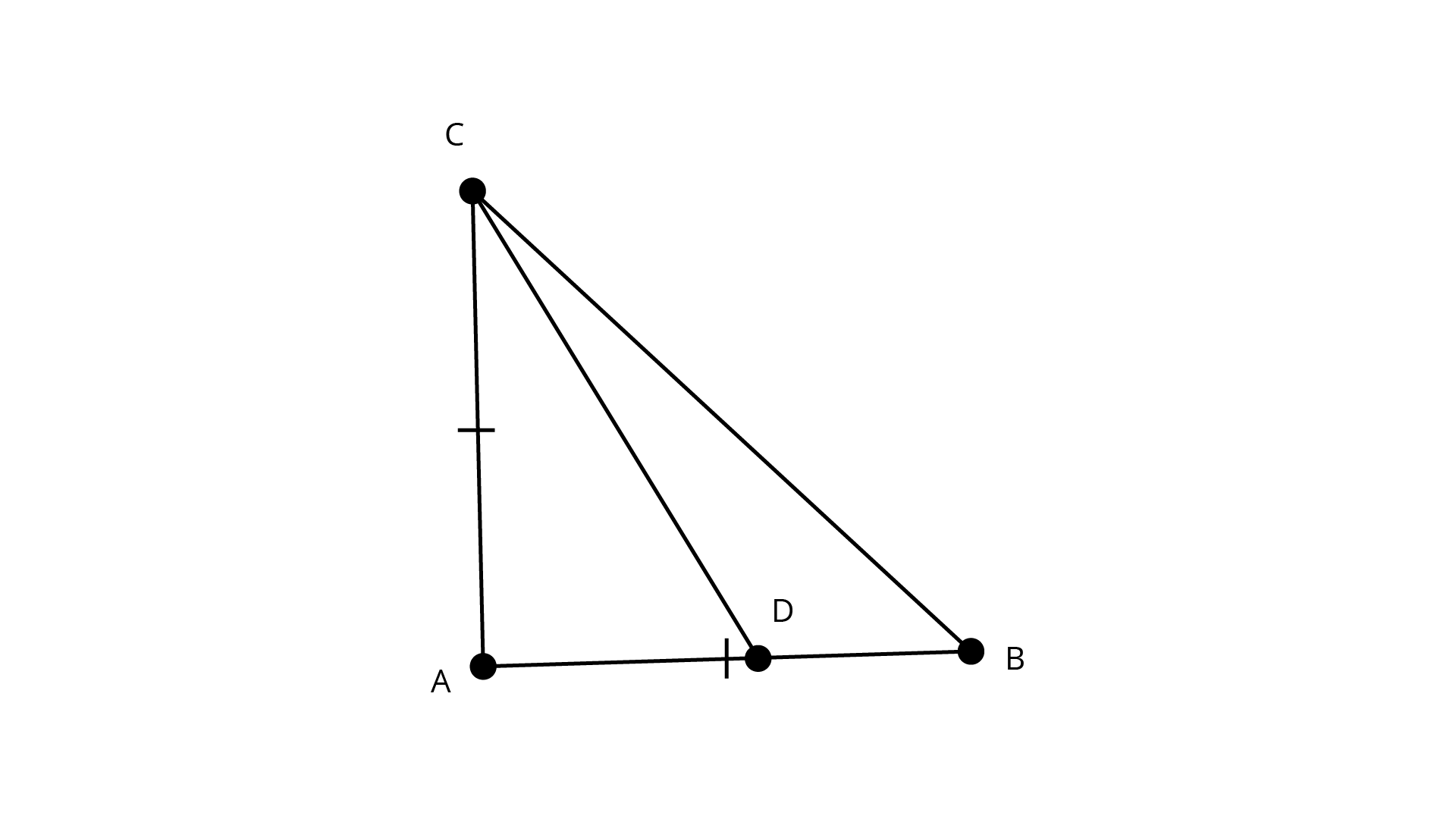 Ans: \[{\text{ABC}}\] is a right triangle such that \[{\text{AB = AC}}\] and bisector of angle \[{\text{C}}\] intersects the side AB at D.