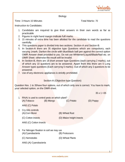 FAQs on Bihar Board (BSEB) Question Paper for Class 12 Biology 2019