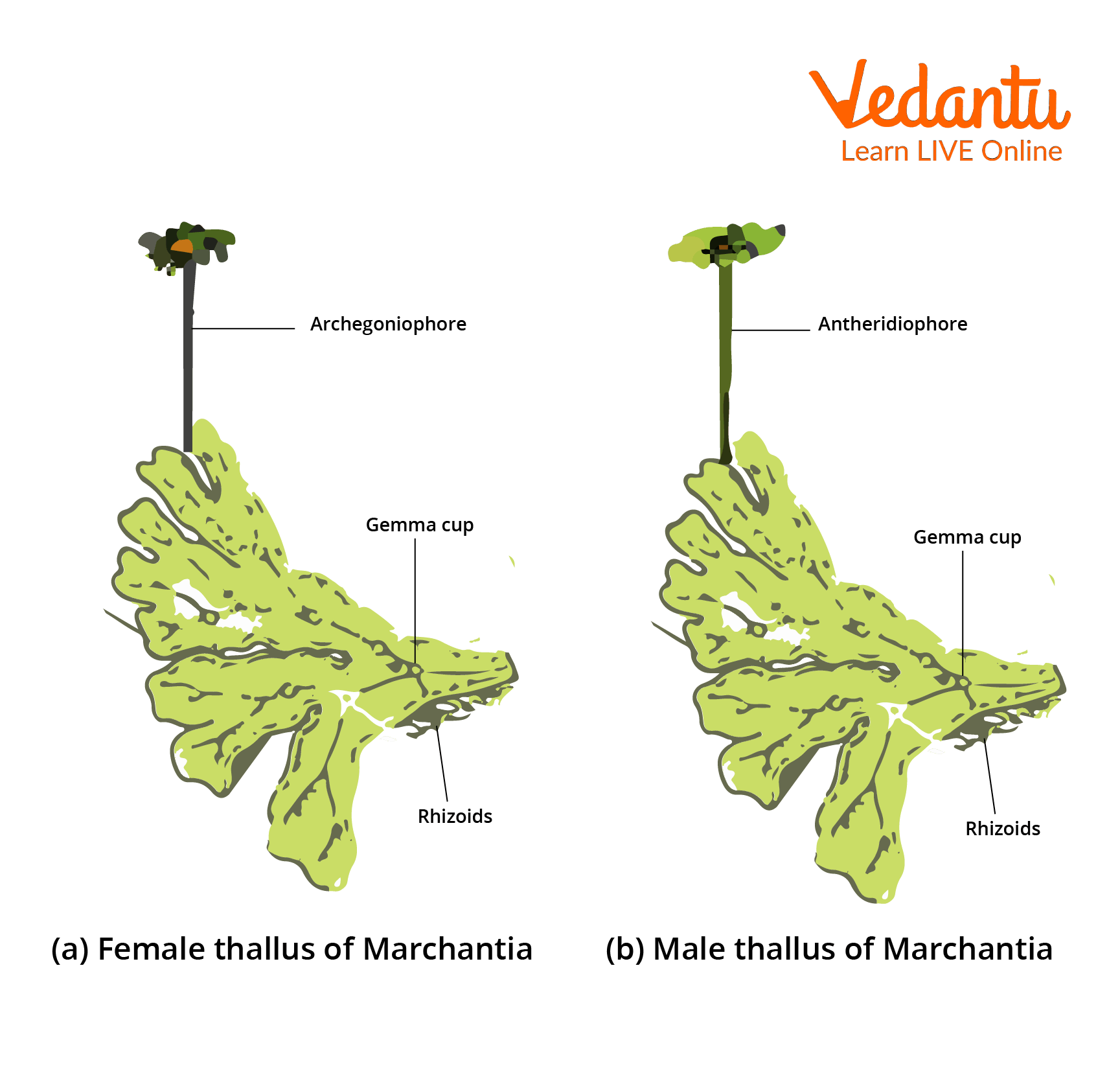 Marchantia is also a genus of liverworts that belongs to the family Marchantia and order Marchantiale. They are known to consist of gemma cups, which help the plant in asexual reproduction. These plants are also known to consist of a barrel-shaped pore on the top surface of their leaves. They are found in moist and shady areas, and reproduction in Marchantia is both sexually and asexually.
