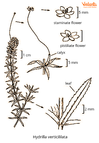 Hydrilla has distinct physical characteristics that help in its identification. Key features include: