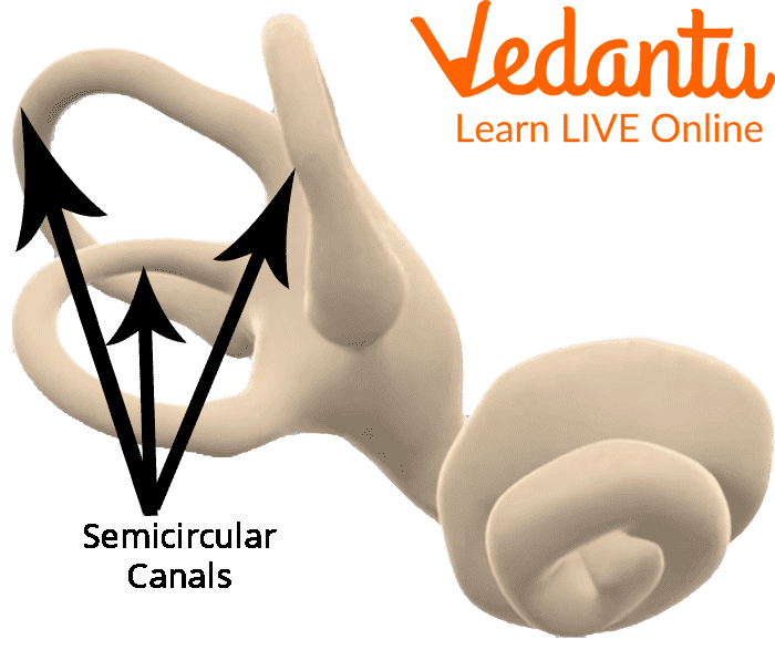 The semicircular canals are filled with fluid, and their walls are lined with tiny hair. When we move our heads, the fluid in the canal moves around and reaches the hair. The hair sends our position information as a signal through nerves to our Brain. The brain interprets those signals and messages towards the muscle and helps us stay balanced.