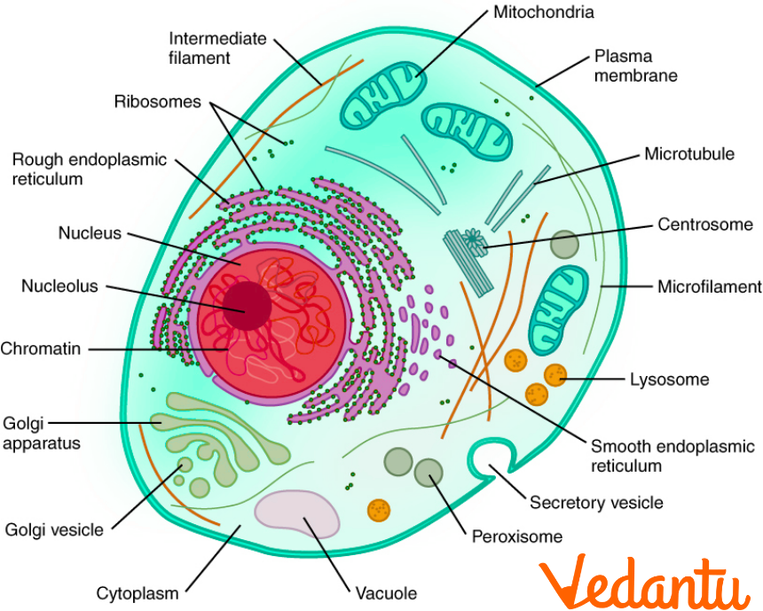 A well-labelled diagram of an animal cell visually represents all key cell organelles, each clearly marked with labels. It typically shows the nucleus, mitochondria, endoplasmic reticulum, Golgi apparatus, lysosomes, centrioles, ribosomes, vacuoles, cytoplasm, and plasma membrane. Understanding such diagrams is essential for visualising the structure and spatial arrangement of cell organelles in biology studies.