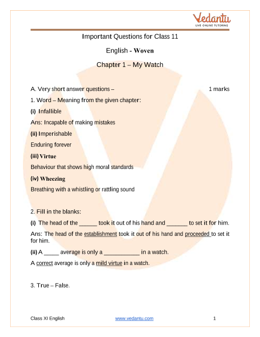 The most important questions for 'My Watch' Class 11, as per CBSE 2025-26, typically include: