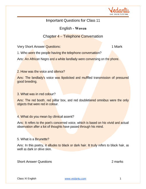 FAQs on Important Questions Class 11 English Woven Words Chapter 4 Poem