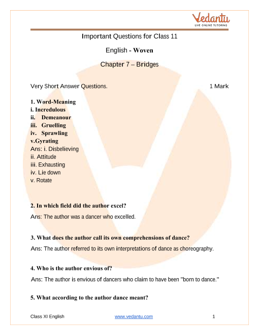 1. What are the most important 3-mark questions from CBSE Class 11 English Woven Words Chapter 7 – Bridges for 2025–26 exams?