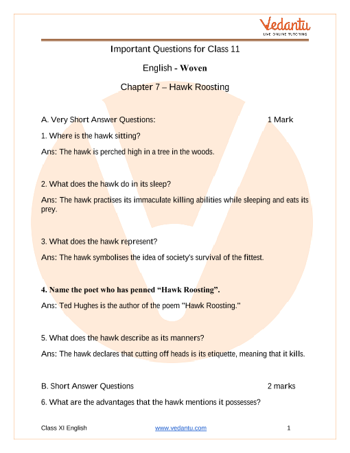 12. Why is "Hawk Roosting" a frequently asked question topic in CBSE board exams? (Exam relevance FUQ)