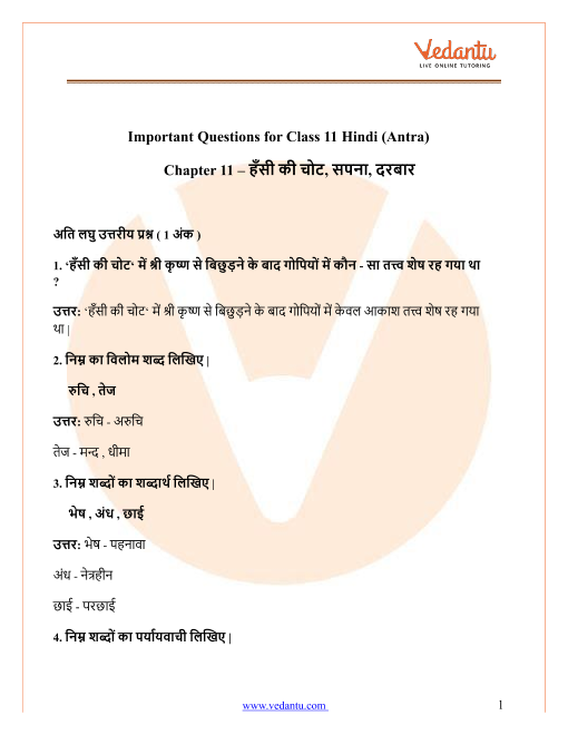 1. What are the main themes covered in the CBSE Class 11 Hindi Antra Chapter 11 Hasi Ki Chot, Sapna, Darbar important questions for 2025–26?