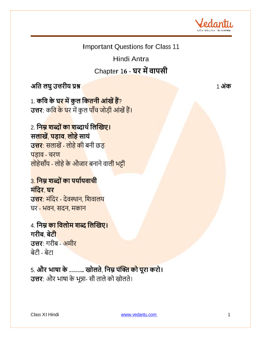 12. What could be a potential misconception students have when interpreting Ghar Me Waapsi for important questions?
