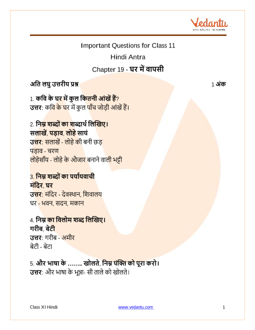 FAQs on Important Questions Class 11 Hindi Antra