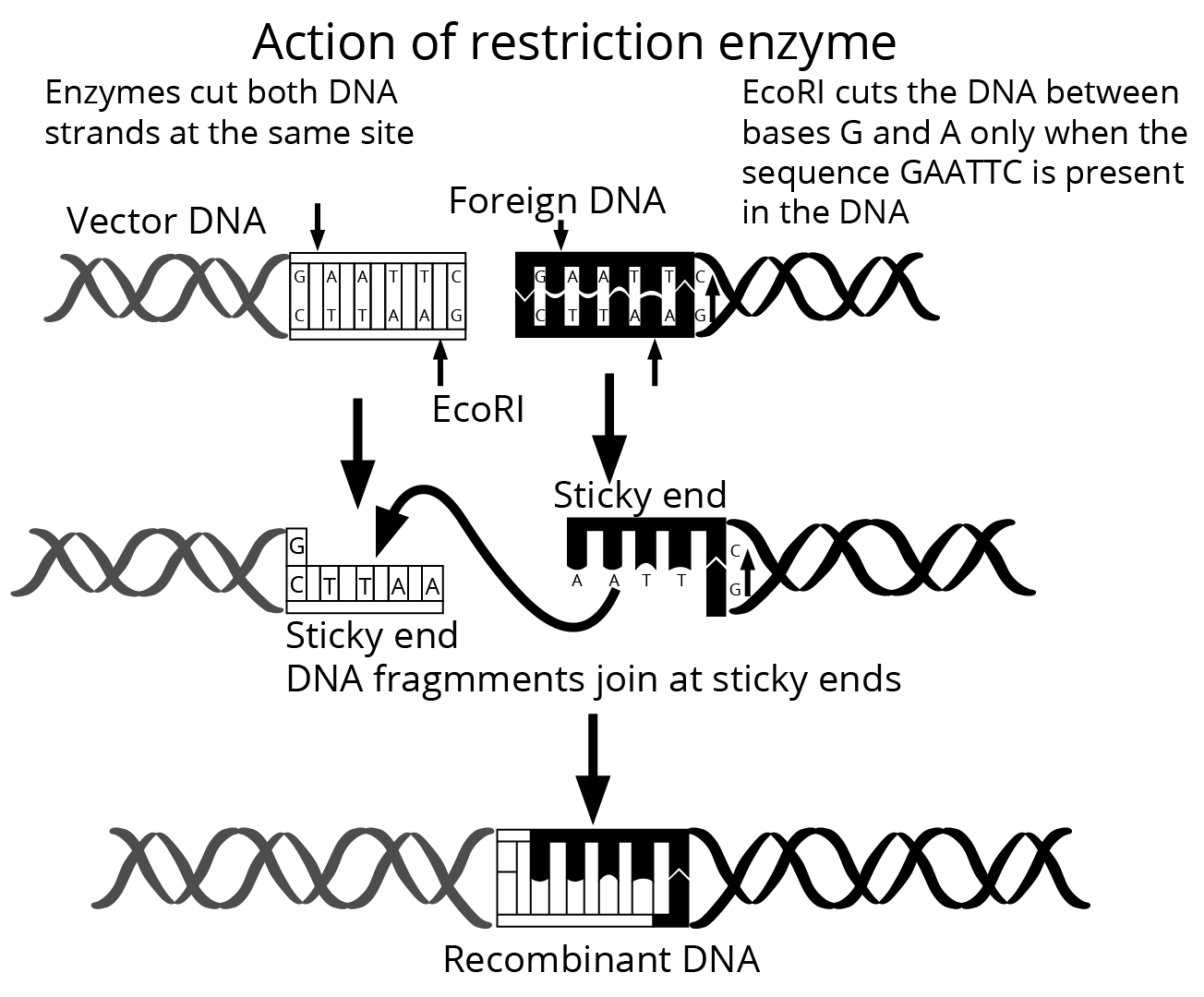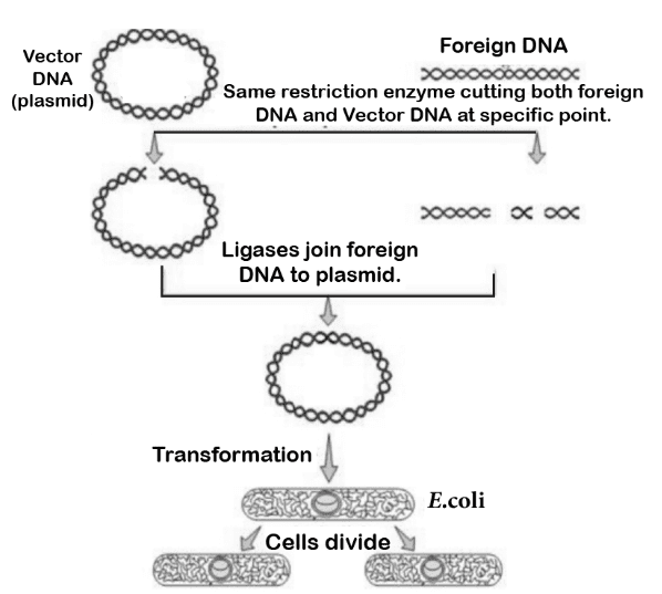 - Use of enzymes — including restriction enzymes (molecular scissors) and ligases for cutting and joining DNA.