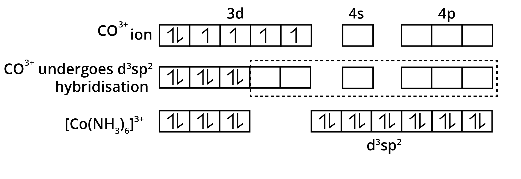 The question often focuses on predicting magnetic behaviour and geometry based on ligand strength: