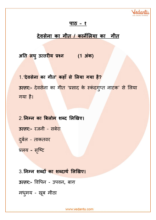 Devsena Ka Geet, Karneliya Ka Geet Class 12 Extra Questions and Answers Free PDF Download