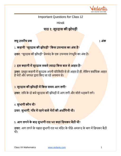 FAQs on CBSE Important Questions for Class 12 Hindi Antral Surdas Ki Jhopdi - 2025-26
