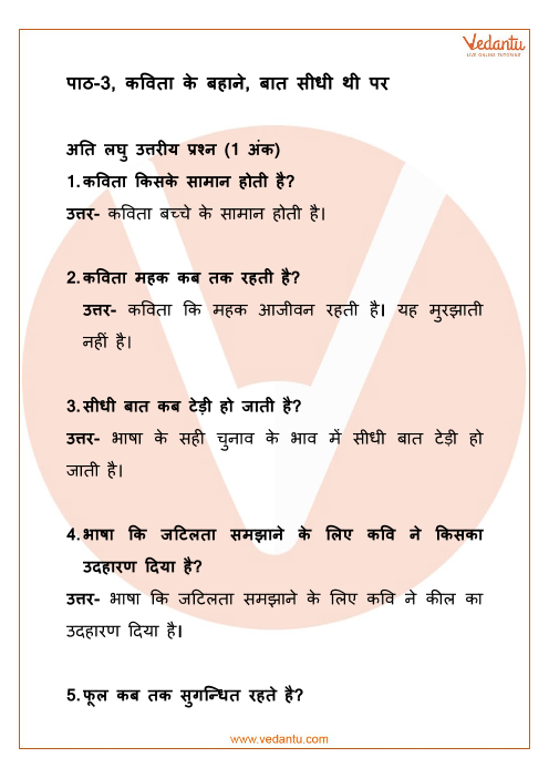 Kavita ke bahane, Baat sidhi thi par Class 12 Extra Questions and Answers Free PDF Download