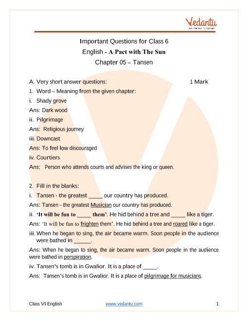 Ans: Class 6 English Supplementary Chapter 5 ‘Tansen’ is a very interesting chapter that tells a brief introduction about the life of Tansen. Tansen is the true story of India's greatest musician, Tansen, who was born in the late 1500s. To understand the chapter, you can go through the notes, important questions and answers given at the official website of Vedantu (vedantu.com). Students can also download the PDF of important questions free of cost to study offline. You can also avail the NCERT solutions to each and every question given at the end of the chapter.