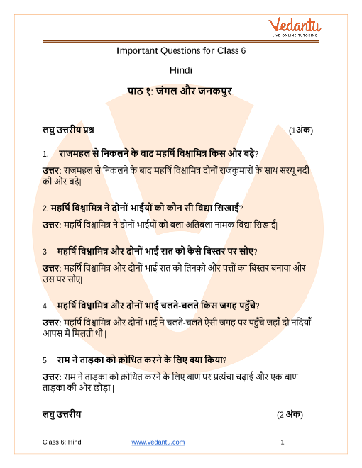 Q3. How can Class 6 students use Vedantu’s Important Questions for Chapter 2 Bal Ram Katha of Class 6 Hindi to their advantage?