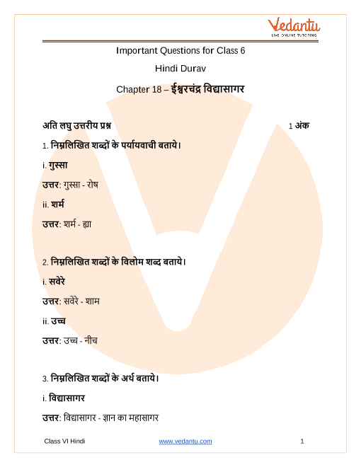 An Overview of Important Questions Class 6 Hindi Durva Chapter 18