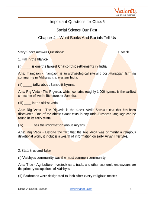 FAQs on CBSE Important Questions for Class 6 Social Science What Books And Burials Tell Us - 2025-26