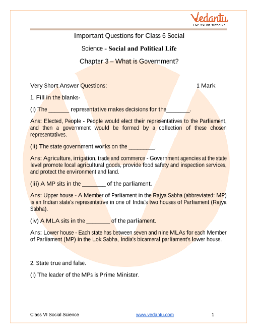 What is Government? Class 6 Extra Questions and Answers Free PDF Download