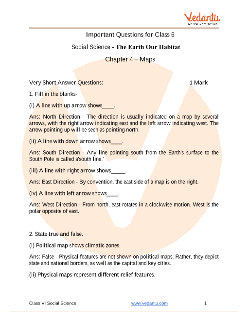 1. What types of questions are most important from CBSE Class 6 Social Science Chapter 4, Maps, for the 2025-26 exams?