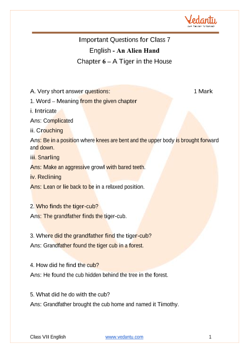 Important Questions Class 7 English An Alien Hand Chapter 6