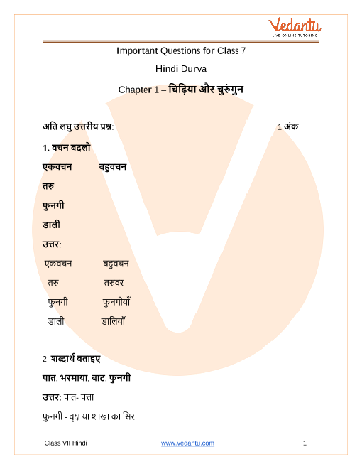 1. What is the best way to use these important questions for CBSE Class 7 Hindi Durva Chapter 1 Chidiya Aur Churungun?