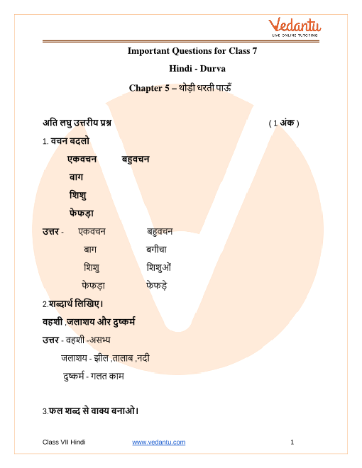 Important Questions Class 7 Hindi Durva Chapter 5
