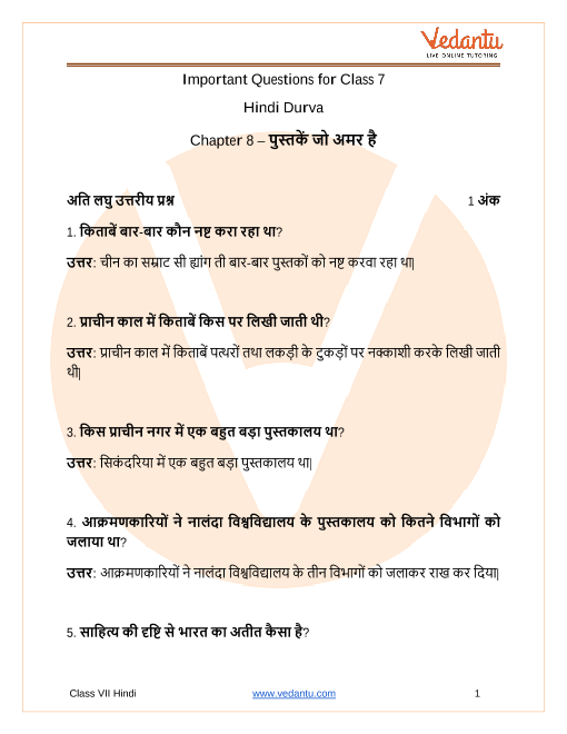 An Overview of Important Questions Class 7 Hindi Durva Chapter 7