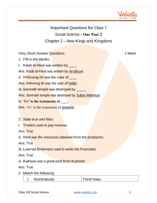 FAQs on CBSE Important Questions for Class 7 Social Science New Kings and Kingdoms - 2025-26