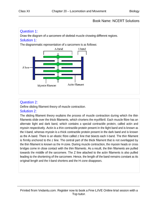 Vedantu aims to make learning fun. Students are unable to score high marks only when they do not want to study a particular subject. With the help of one-on-one tutoring sessions, live classes, and a wide range of excellent study material, Vedantu ensures that its students take an active interest in learning. With CBSE class 11 Biology Revision Notes Chapter 20 - Locomotion and Movement and NCERT Solutions for Class 11 Biology Chapter 20, students are bound to fare well in class 11 Biology as long as they stay consistent.